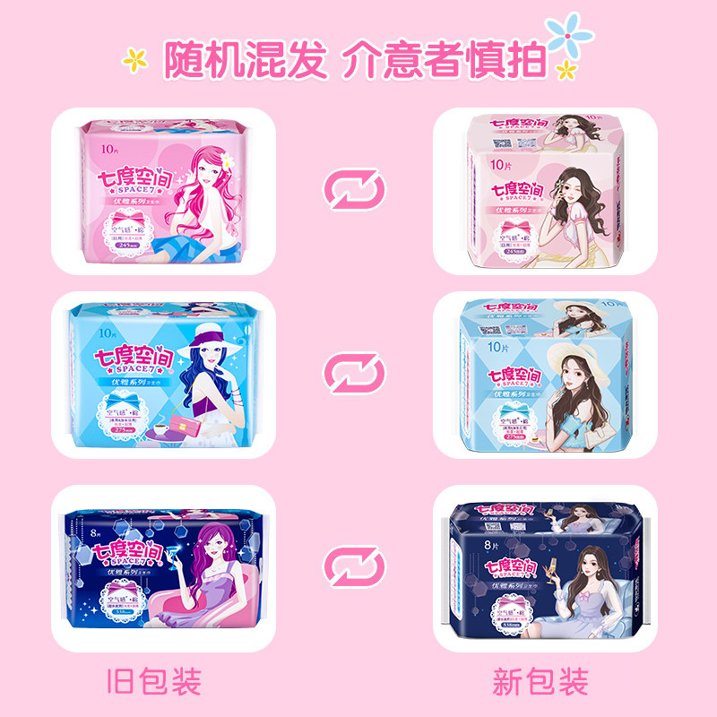 Seven - degree space sanitary towel with long night 338mm aunt towel full box official flagship website