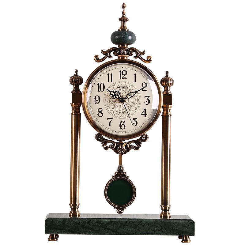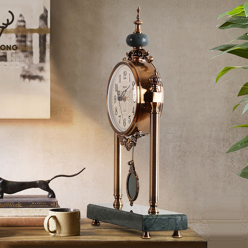 American vintage clock clock Creative ornaments clock Fashion European living room Metal clock Bedroom silent sitting clock