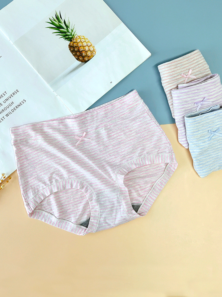 Caitian underwear female 31302 graphene high waist modal two-color yarn striped large size fat girl student underwear
