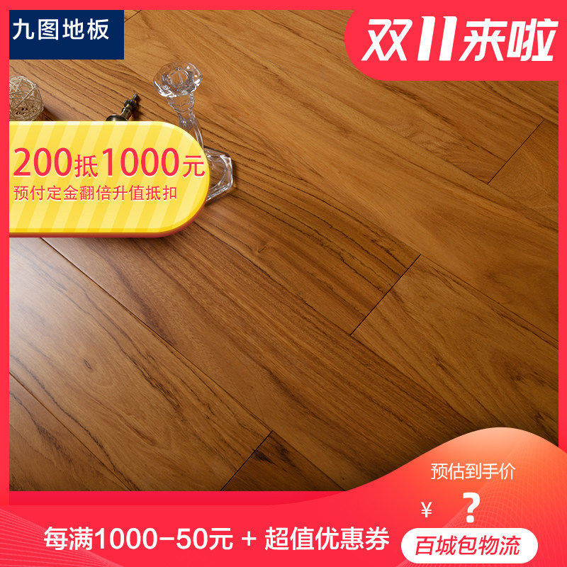 Jiutu Burmese eggplant (African huanghuali) log pure solid wood floor free keel lock floor heating factory direct sales