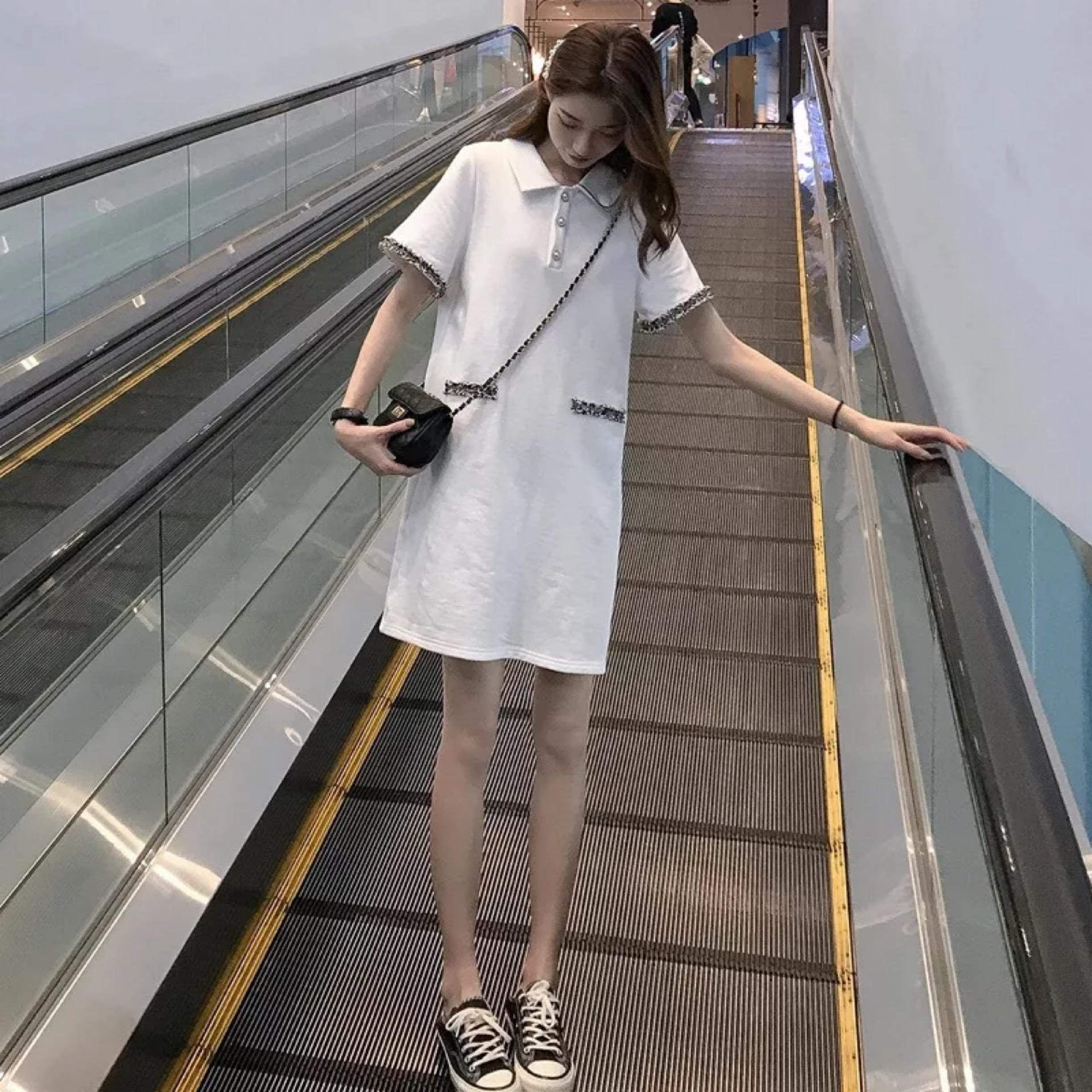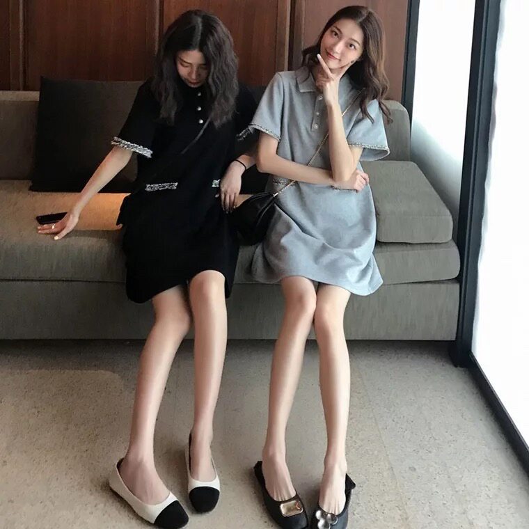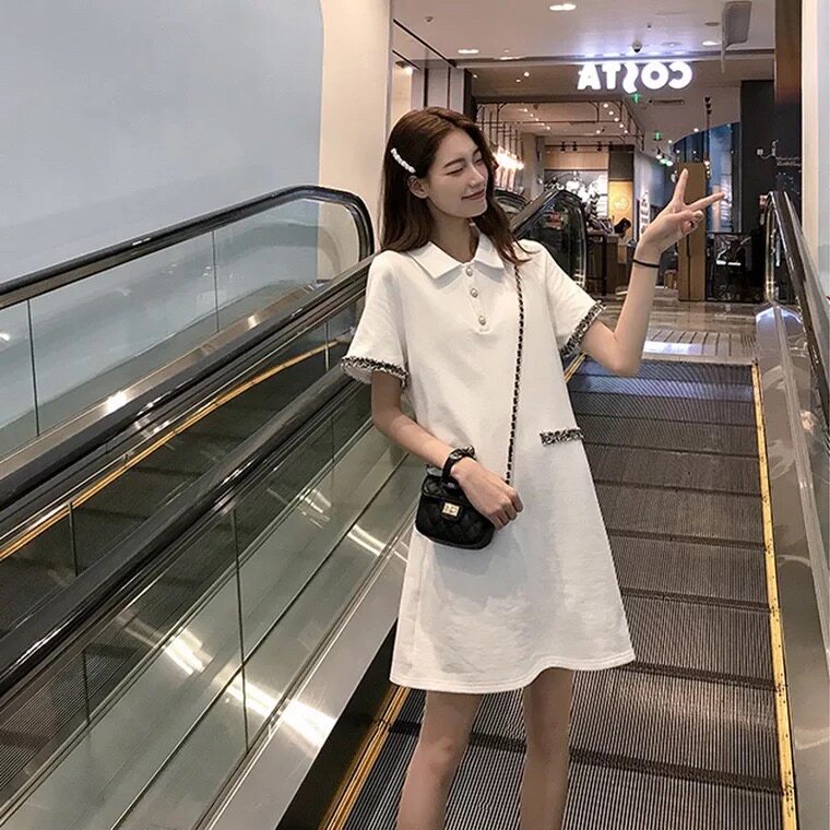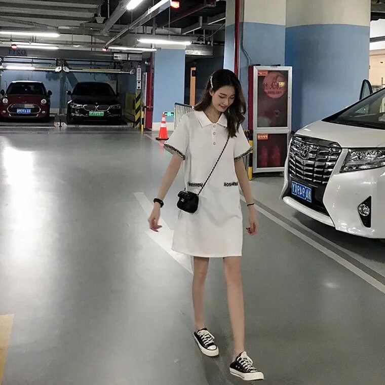 French small crowdsourced polo collar foreign dress 2019 new summer pop little fresher student a word dress egg