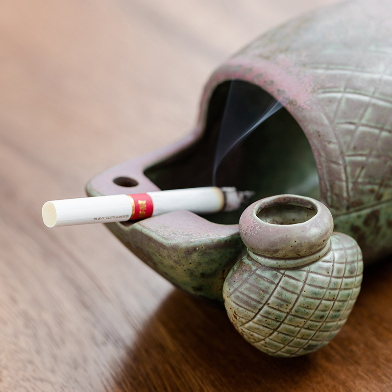 The grass boat is borrowed from the smoke (the personality smoking the ashtray)