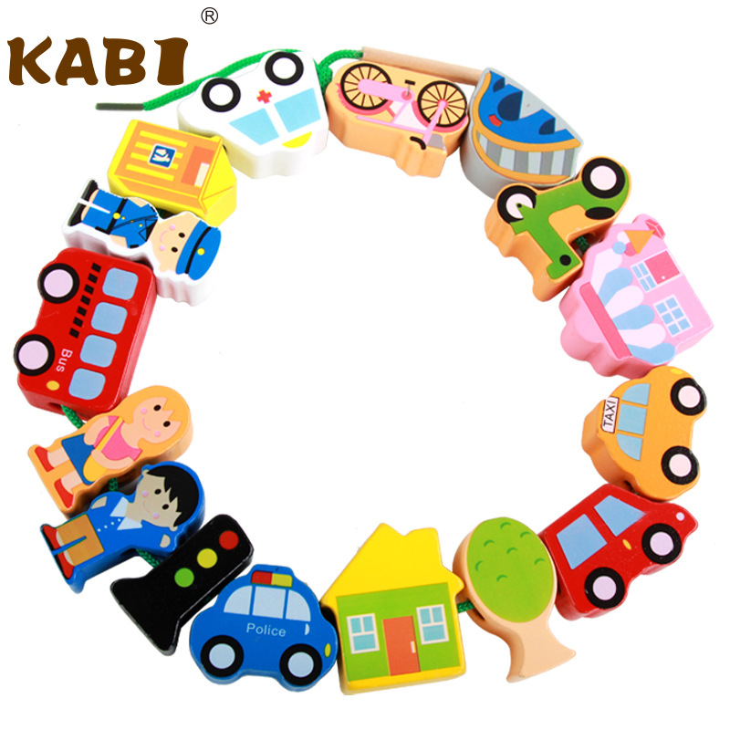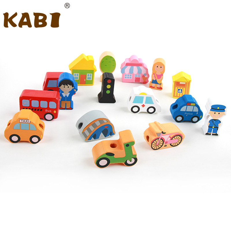 Wooden car toy beaded string music threading hands-on children's kindergarten area material wooden educational toys
