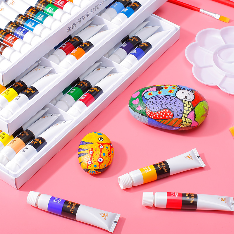 Green Bamboo Propylene Pigment Small Boxed Tool Suit Beginners 24 Color Students Stone Dye Paint Cobble Painted Children Graffiti Shoes Textile Clothes Hand-painted T-Shirt Diy Material