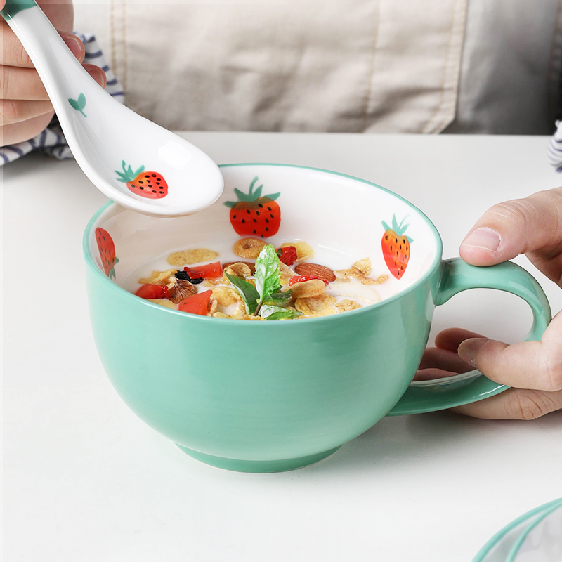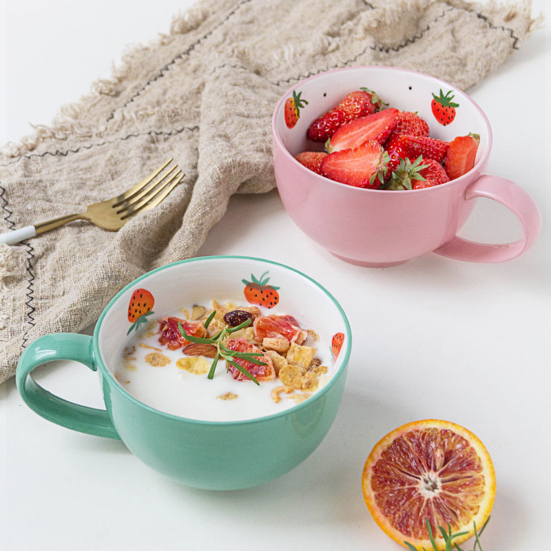 ezicok Breakfast Cup Ceramic Milk Cup Large Capacity Water Cup Home Cute Soup Cup Oatmeal Cup Mug