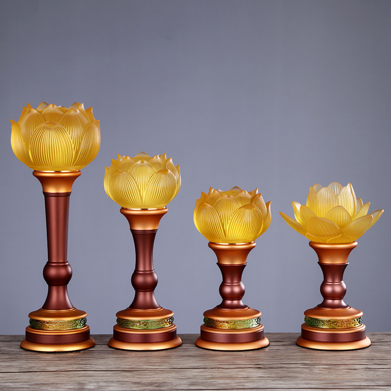 Yuantong craft colorful glazed lotus lamp Buddha supply lamp led household plug-in power supply lamp a pair of Buddha lamps