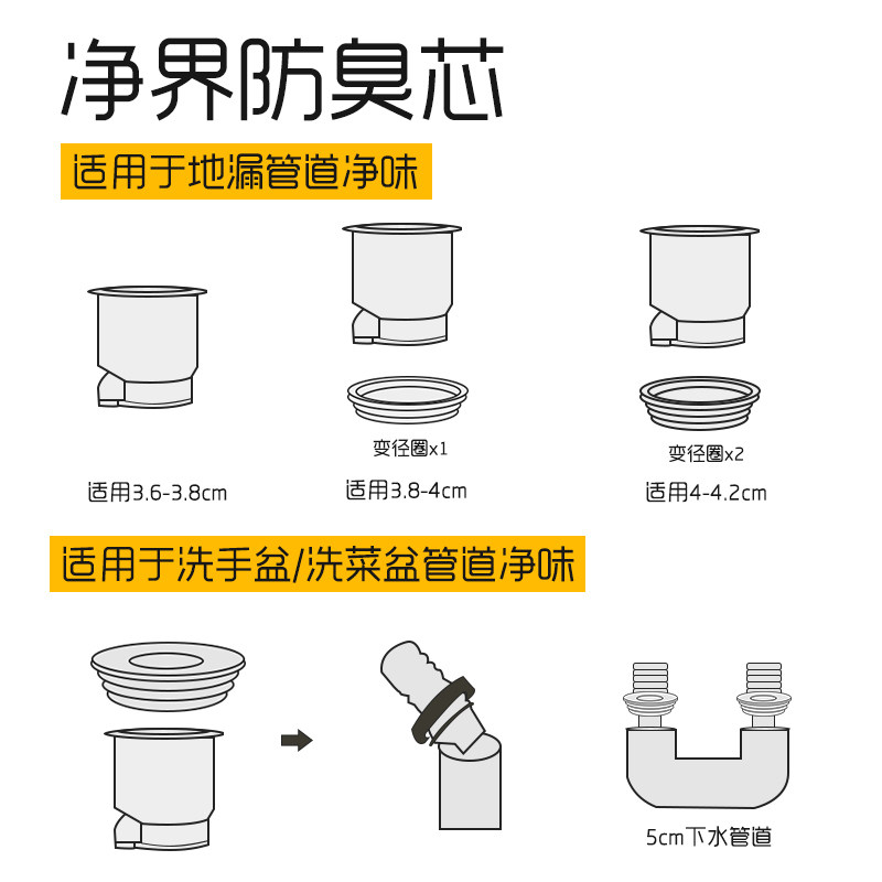 Washbasin deodorant device, floor drain deodorant device, 2 pieces and 3 sets