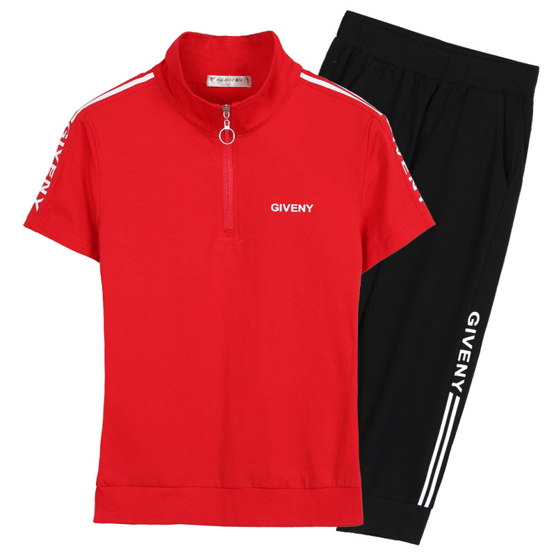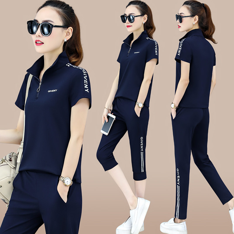 Sports Suit Women Summer 2022 New Loose Pure Cotton Casual Foreign Pie Big Size Short Sleeve Long Pants Summer Dress Sportswear