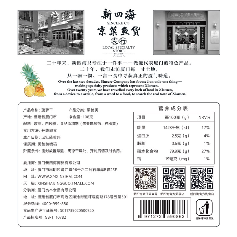 New Four Seas Pineapples Dry 108g Xiamen Special Pineapple Slices Water Fruits Dried Fruits Candied Fruits Office Snacks Small Packaging