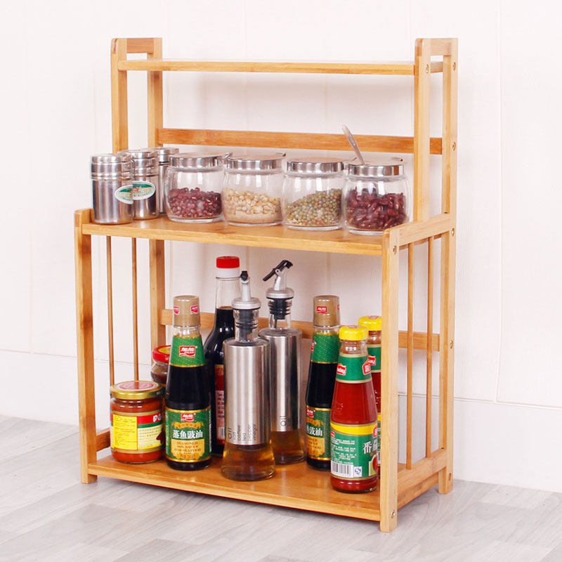 Kitchen condiment shelf Seasoning storage shelf Multi-function seasoning box shelf Desktop condiment shelf Bamboo