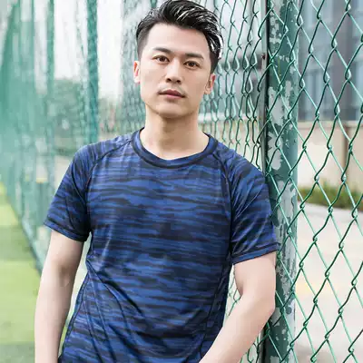 Outdoor quick-drying T-shirt men's short sleeve summer round neck print slim sweat-absorbing breathable mesh elastic hiking fast-drying clothes