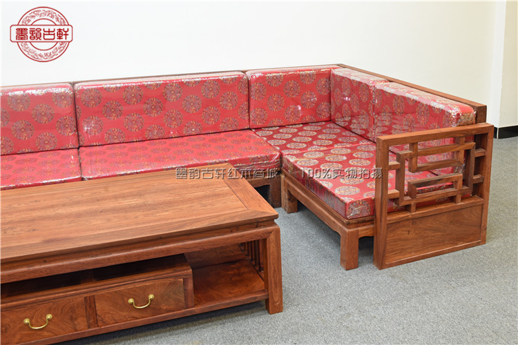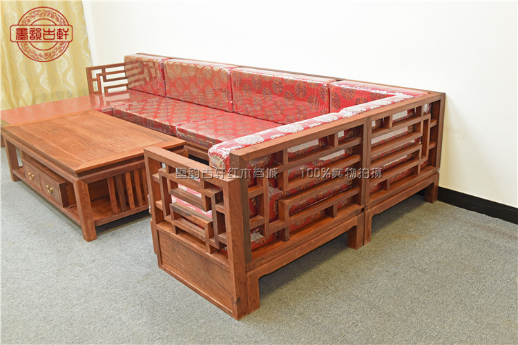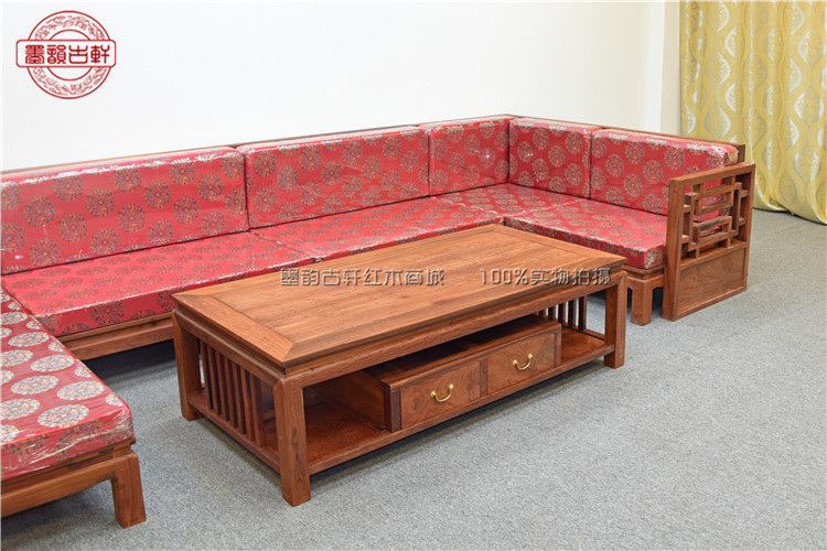 New Chinese mahogany sofa Myanmar rosewood big fruit red sandalwood living room combination furniture solid wood modern sofa
