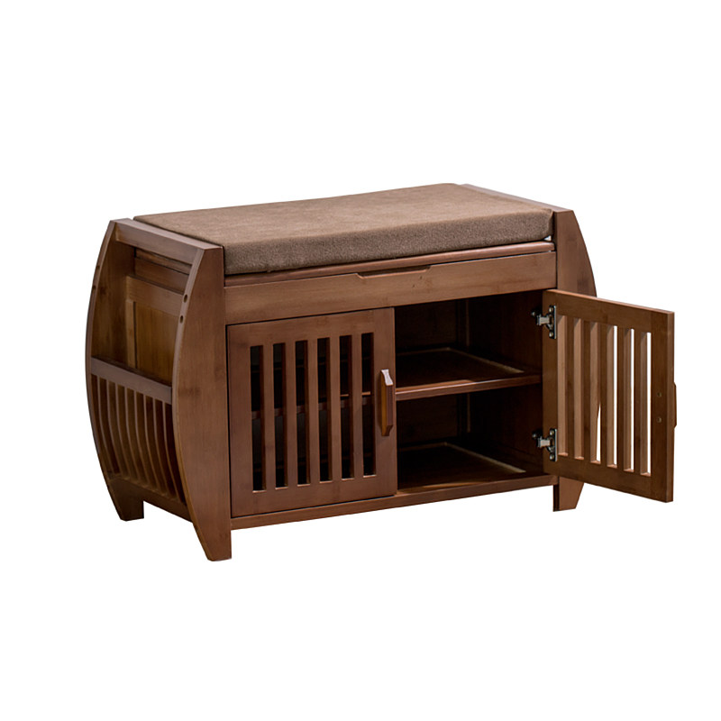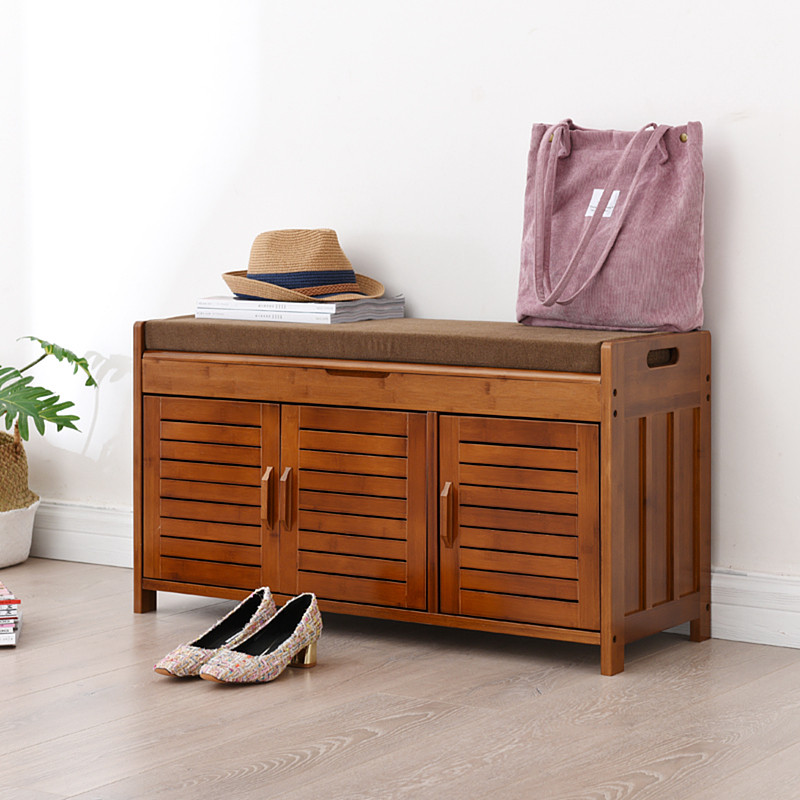 New Chinese-style door-changing shoe stool bamboo solid wood simple door storage shoe cabinet porch modern seatable shoe-wearing stool