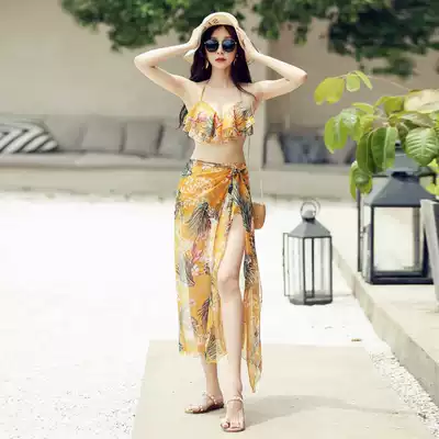 Seaside resort couple swimsuit women's three-piece sexy bikini two-piece thin Belly Belly ruffled beach swimsuit