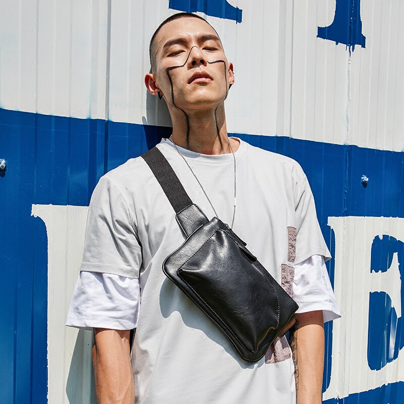 New Genuine Leather Tide Men's Street Pocket Bull Leather Chest Bag Inclined Cross Pack Casual Bag Small Slanted Satchel Bag Single Shoulder Bag