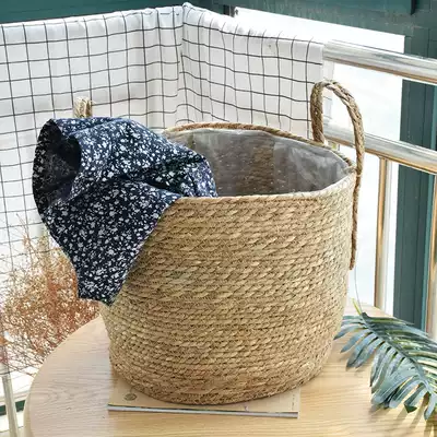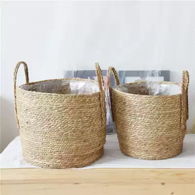 Flower basket decorative straw woven large flower pot cover storage Nordic simple large green plant flower arrangement living room ornaments rattan flower knitting