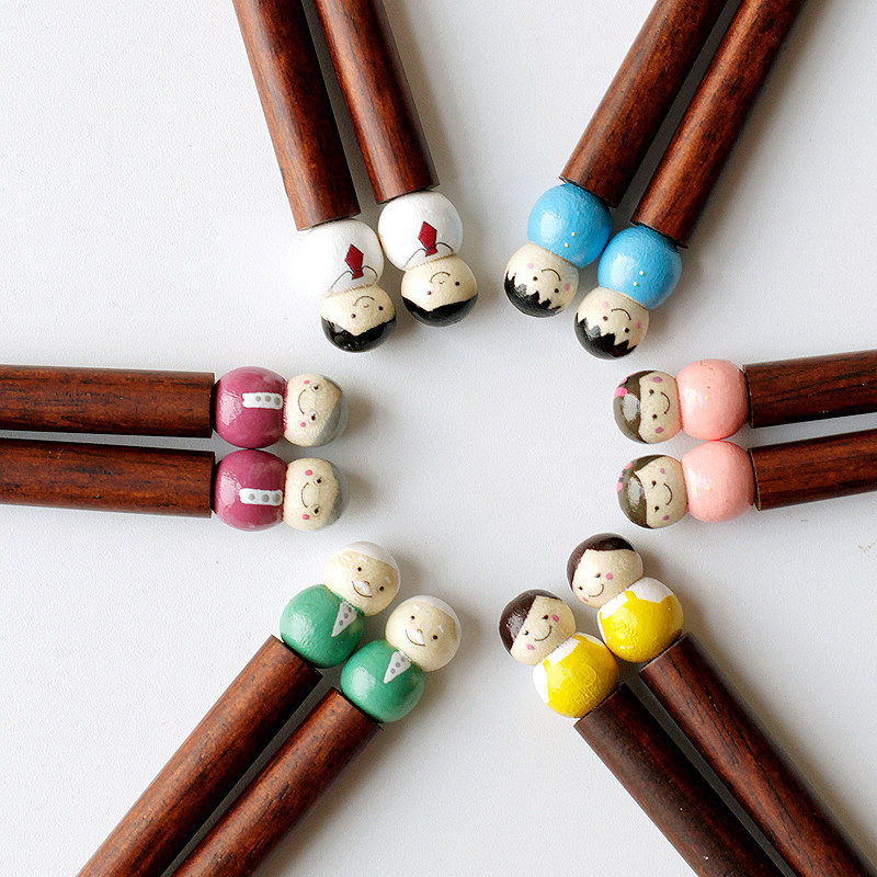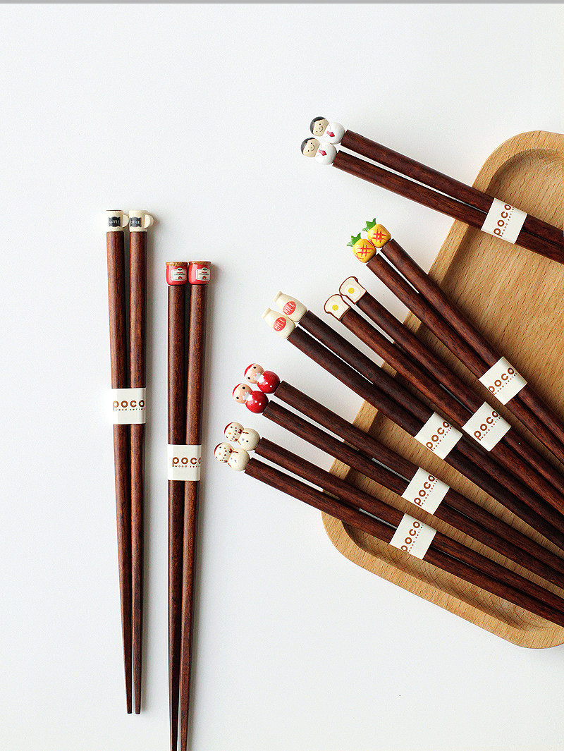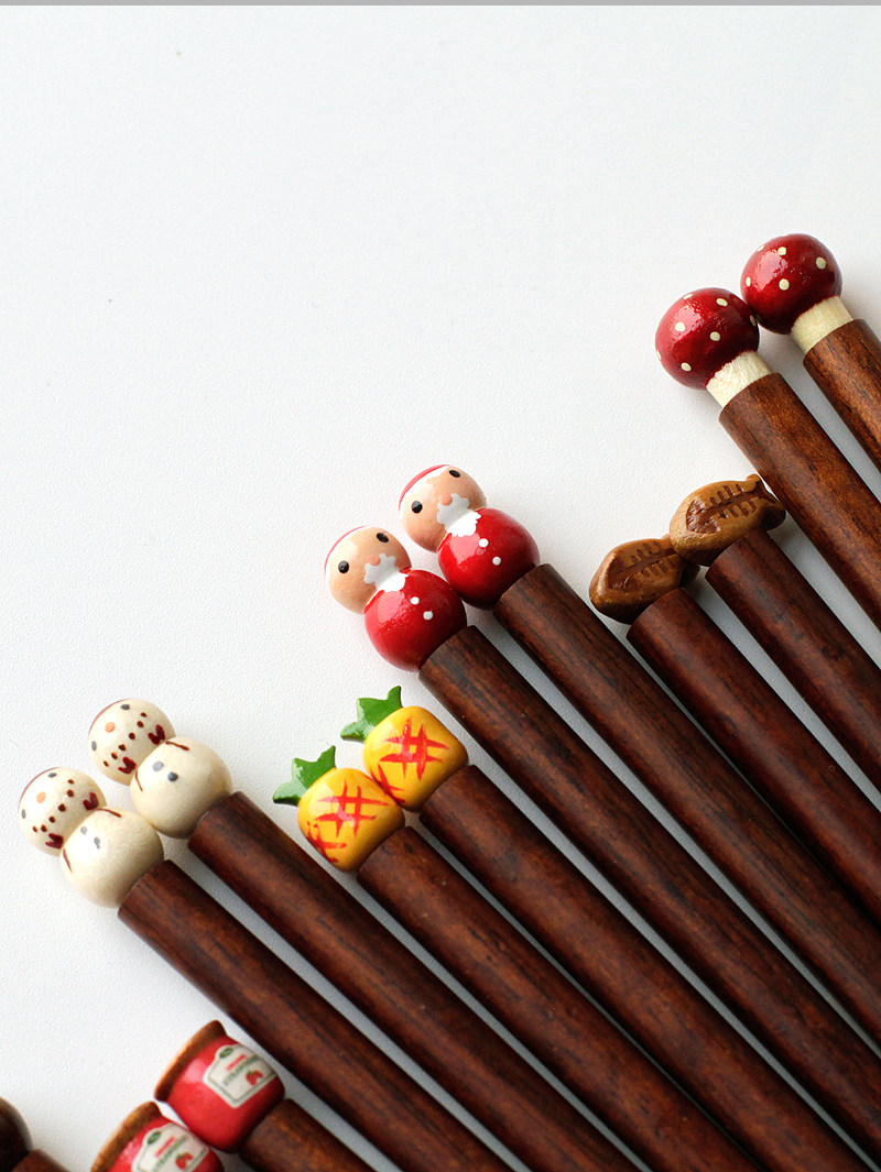 Japan Imports Natural Solid Wood Household Chopsticks Cute Christmas Meal family Daddy Mom and Dad Children's chopsticks