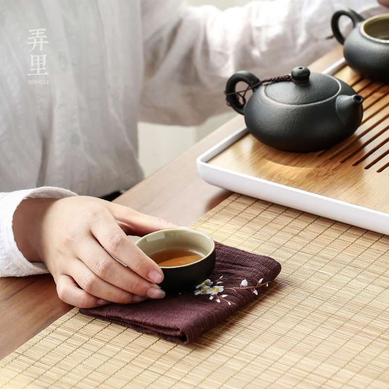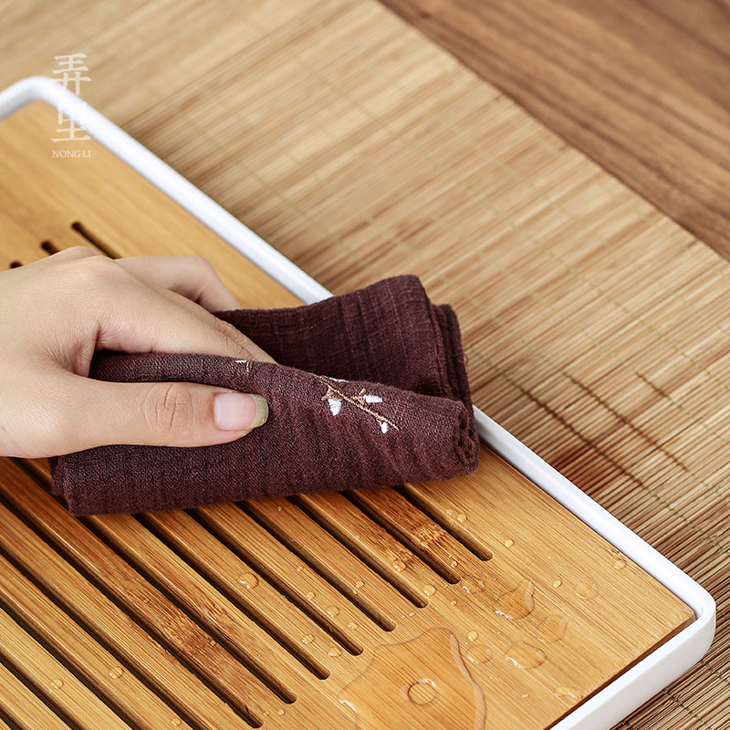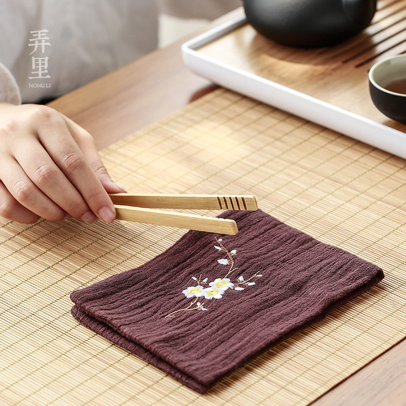 Japanese cotton linen tea towel Absorbent thickening accessories Clean tea cloth Handmade cloth embroidery tea mat tea set Plain color creativity