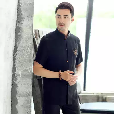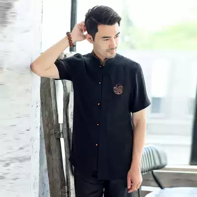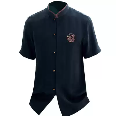 Tang suit Chaoshan youth Chinese shirt stand collar slim copper ammonia silk short sleeve Chinese style casual thin shirt