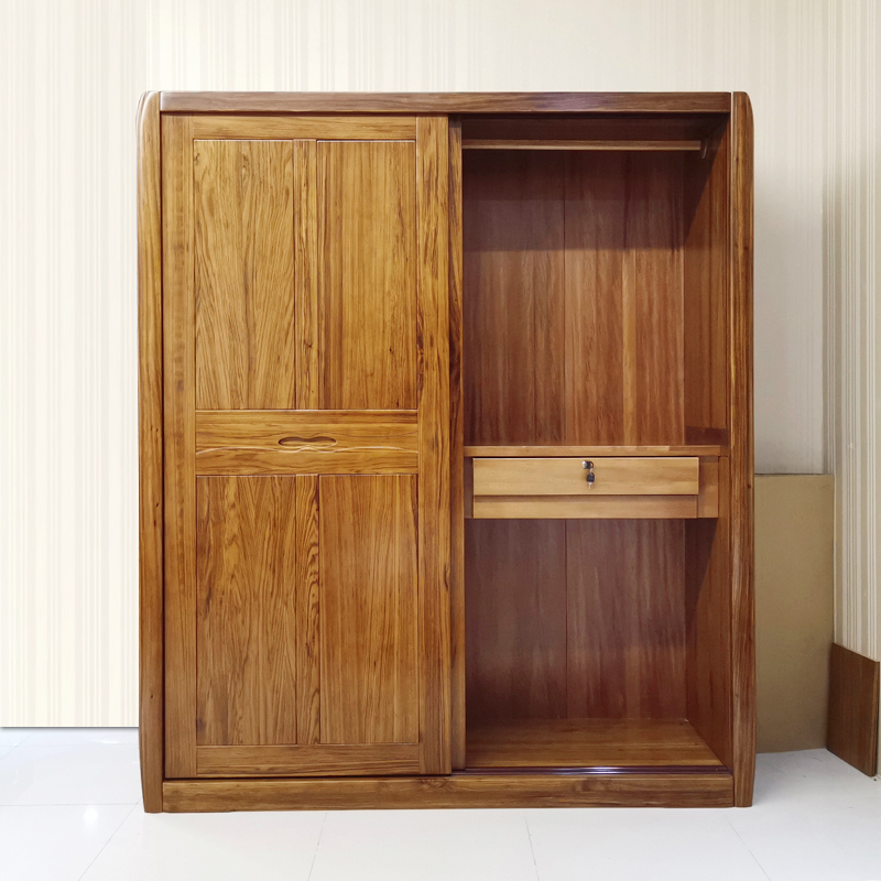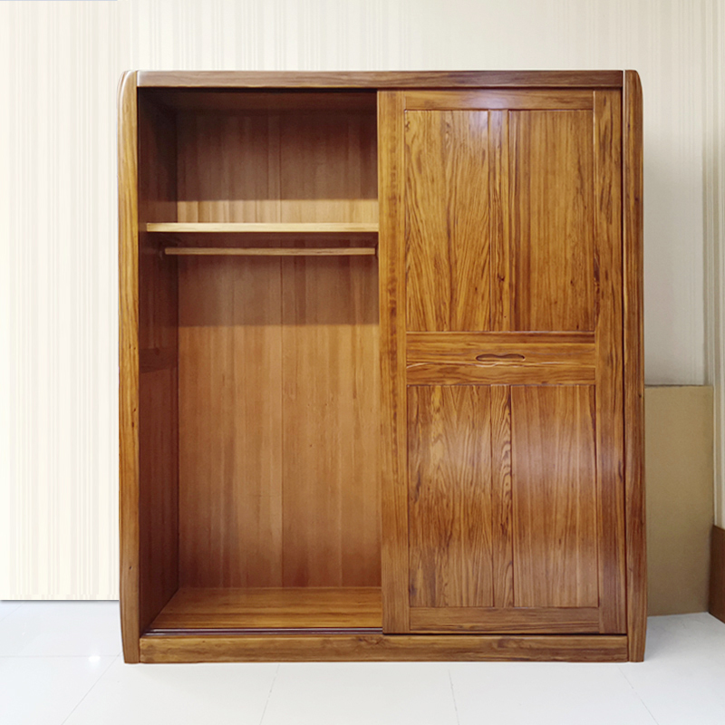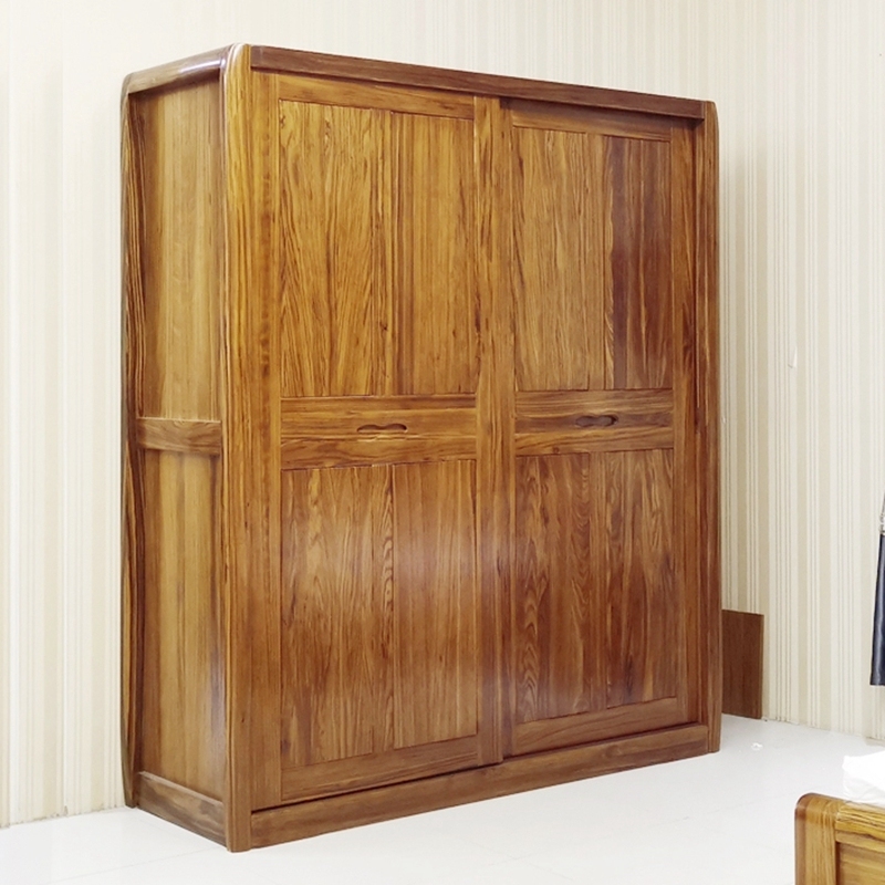 Yimu Shihan Wujinmu solid wood wardrobe sliding door log all solid wood large wardrobe sliding door bedroom assembly