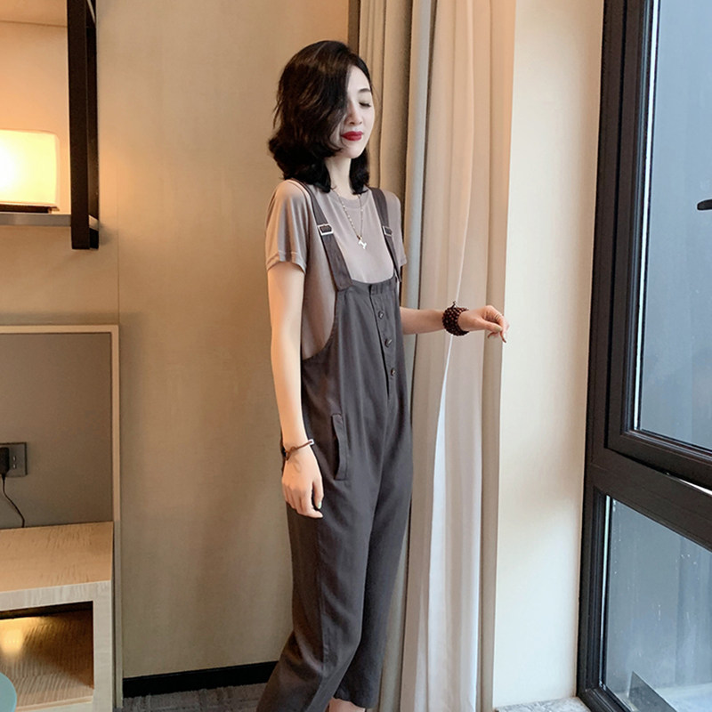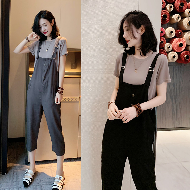 Overalls suit women's summer thin section European station European goods women's fashion trendy age-reducing casual two-piece jumpsuit cropped pants