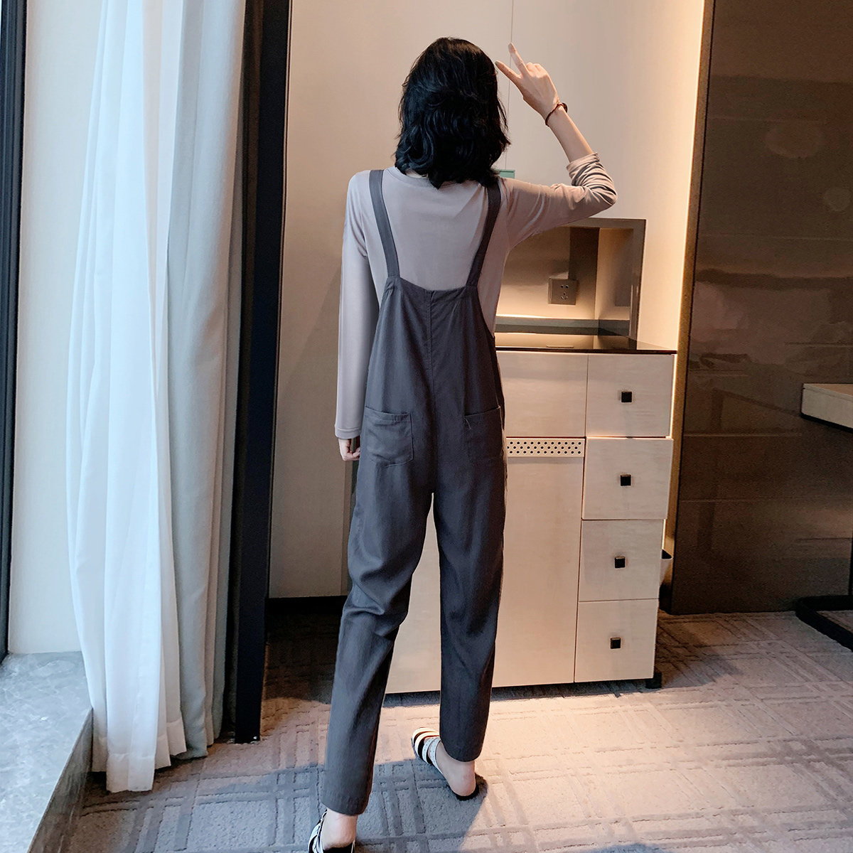 Gray black brown gray two-piece long-sleeved trousers