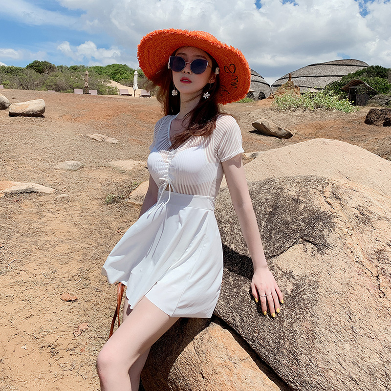 Skirt-style even for a swimsuit in a dress.
