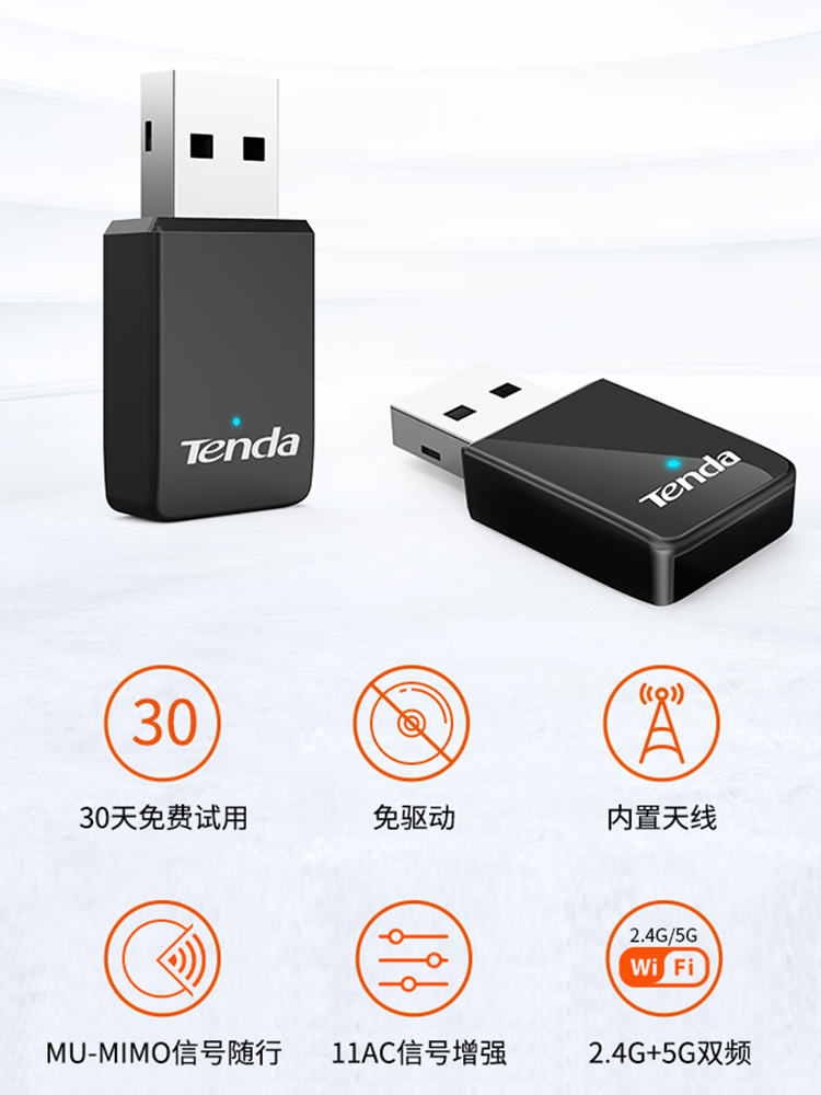 Tenda Desktop computer Computer wireless USB network card wifi hotspot signal receiver transmitter 5g dual band mobile gaming notebook Unlimited portable network External drive-free