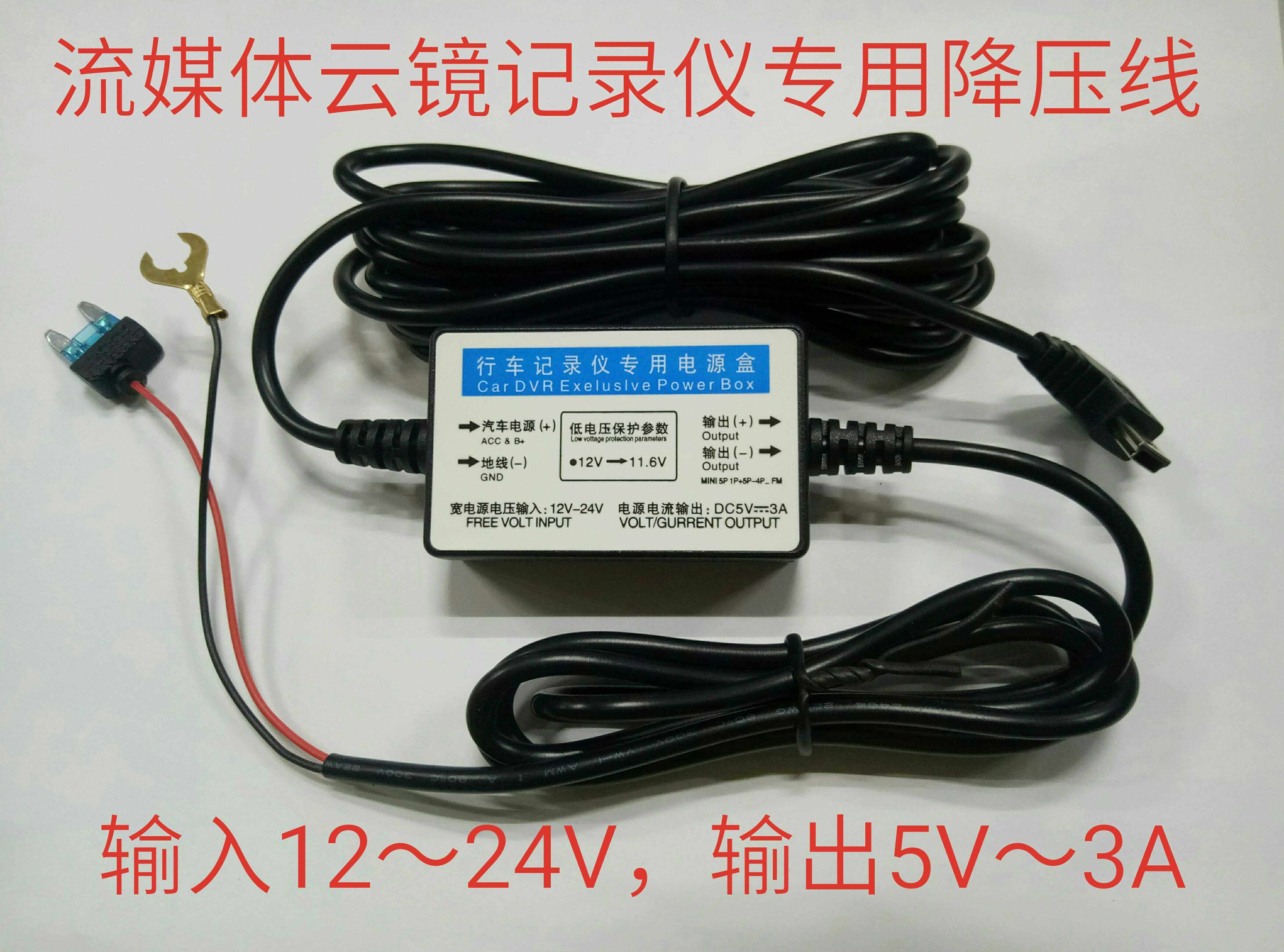 5V3A step-down line streaming cloud mirror recorder parking monitor Universal insurance box Dark Line FM Launch ACC