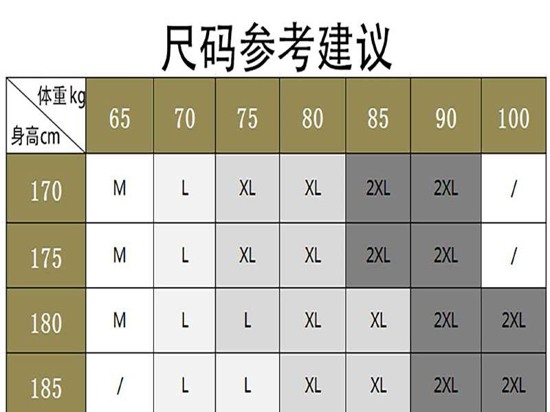 M (100-114 catty) L (115 -140 catty) XL (141-165 catty) 2XL (166-190 catty)
