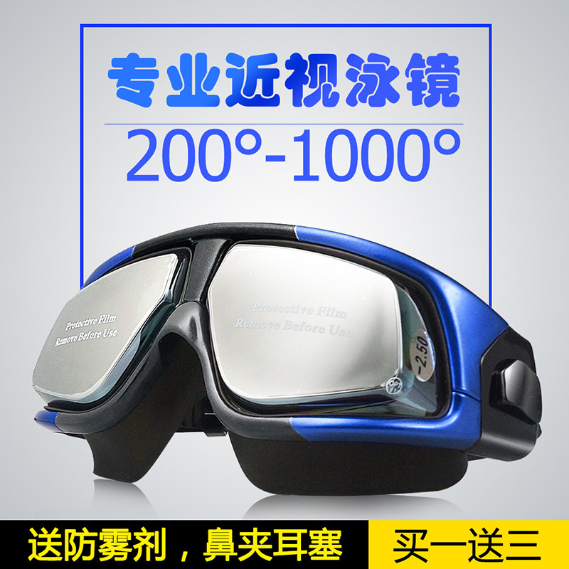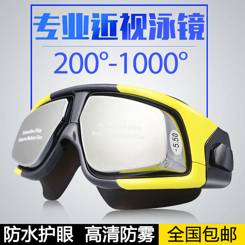 U.S. VR men's swimming goggles female electroplating with degree swimming glasses do not leak water anti-fog HD large frame myopia 1000 degrees