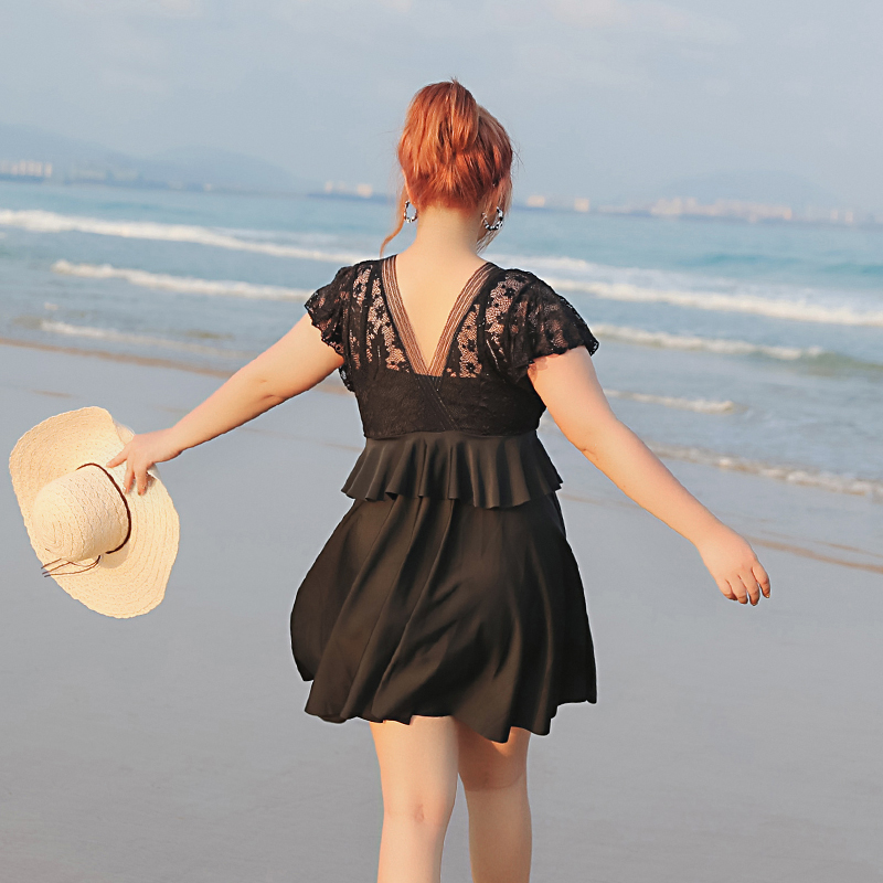Extreme size weight large number swimsuit female fat mm300 pounds of thin steel buckle skirt type hot spring seaside summer