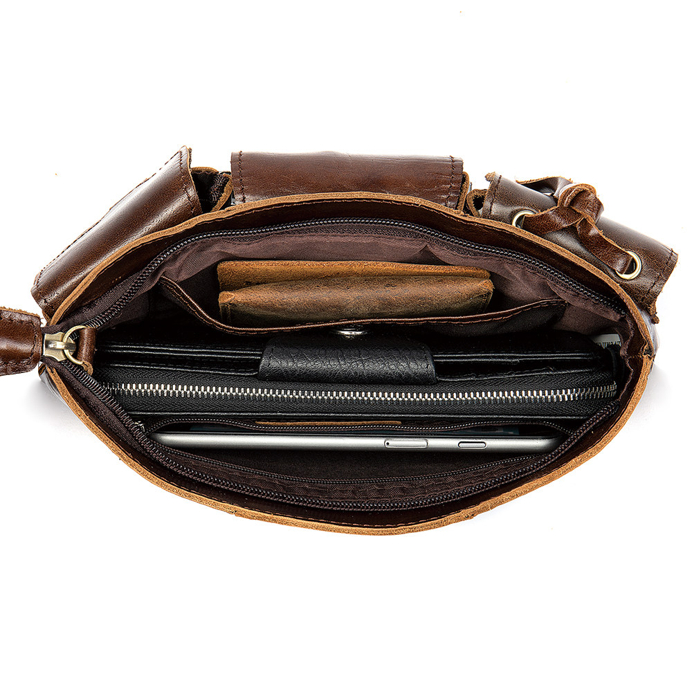 Wax Bull leather mobile phone pocket men's multi-functional skinned leather leather old man casual retro locomotive pack multi-layer