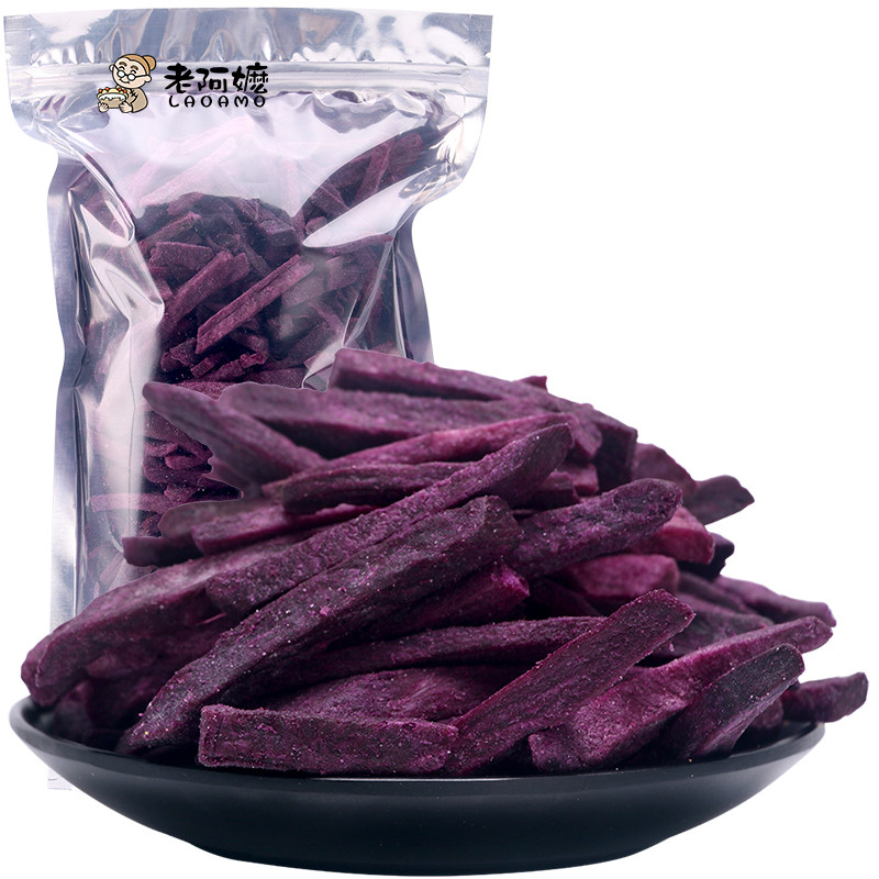 The old lady's purple fries fries and fries, and the pregnant woman snacks the ground melon dry and crisp and small snacks.