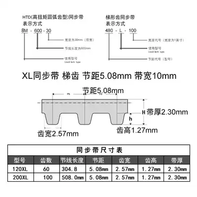 120XL 60 teeth (perimeter 304 8 * width 10mm)200XL 100 teeth (perimeter 508 * width 10mm)