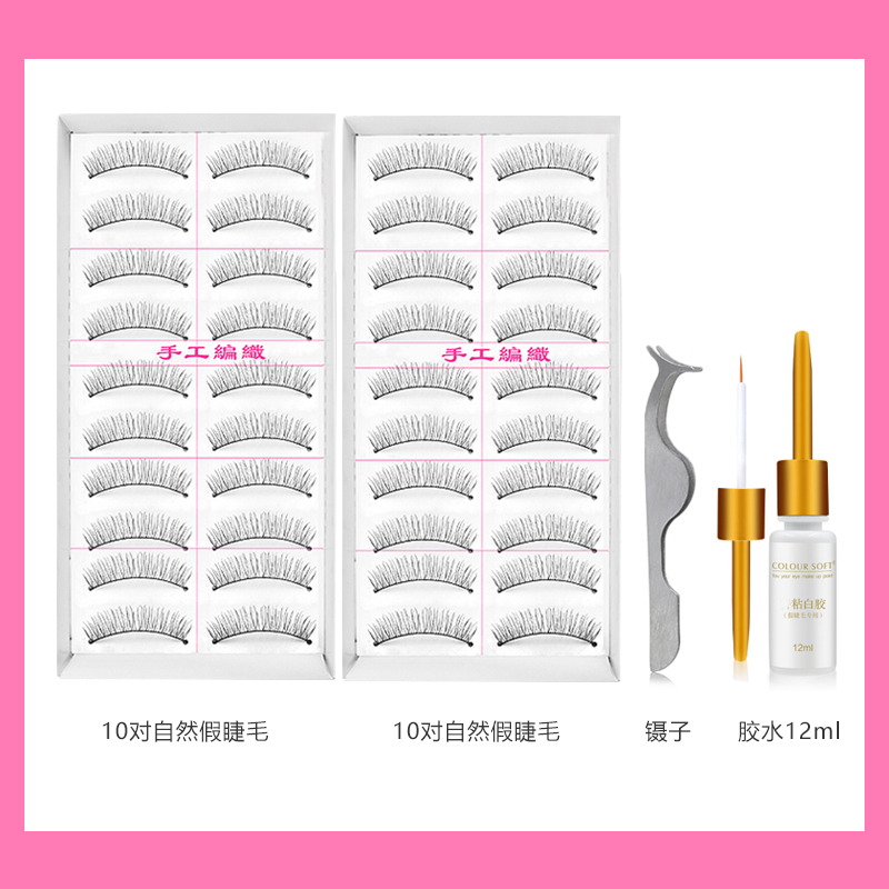 Fake eyelash suit natural emulation slim eye eyelash 20 for glue tweezers beginner students eye light makeup