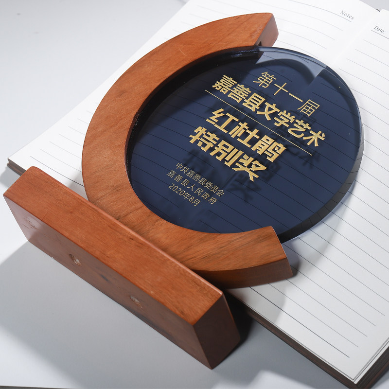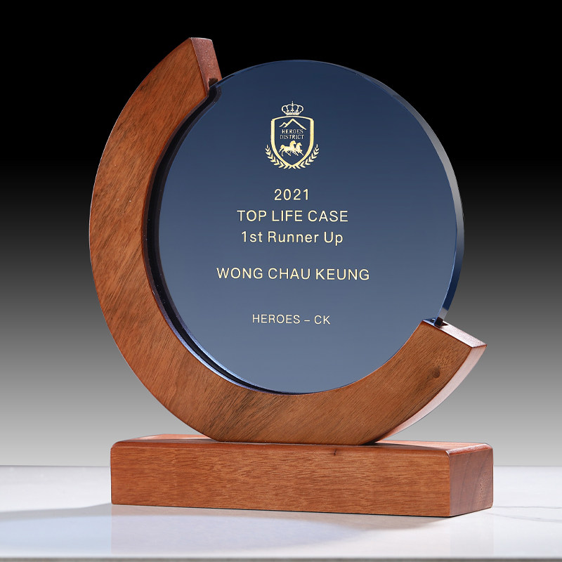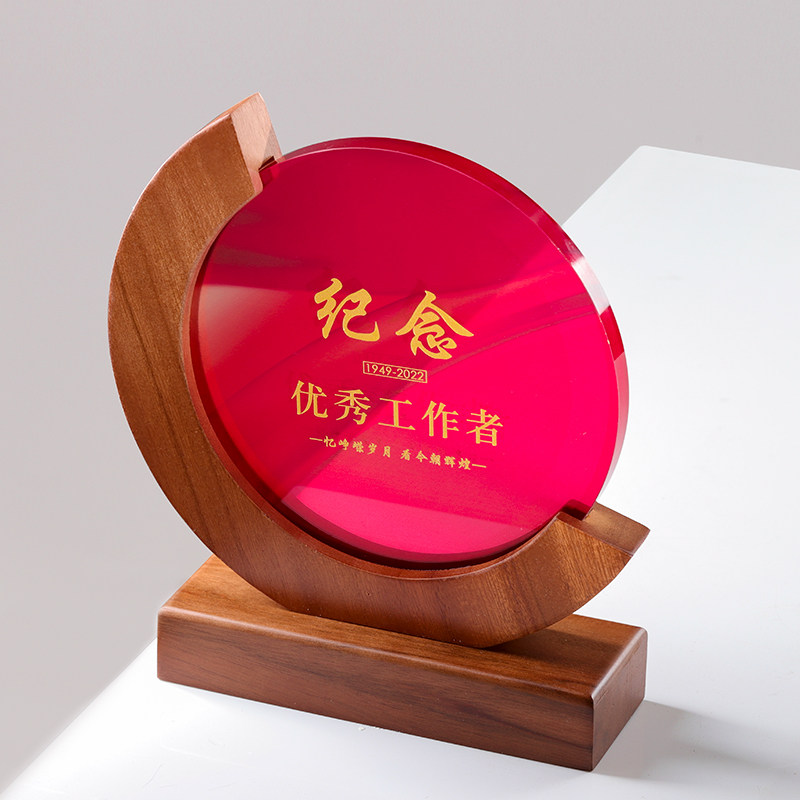 High-grade crystal trophy custom solid wood authorized medal custom lettering round outstanding employee retirement commemorative trophy