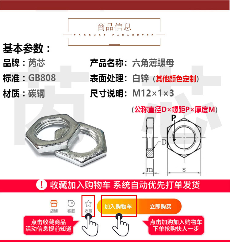 GB808 Hexagon ultra-thin fine tooth flat nut cap M6*1 M8*1 M9*0 75 M10*1 M12*1 M14*1
