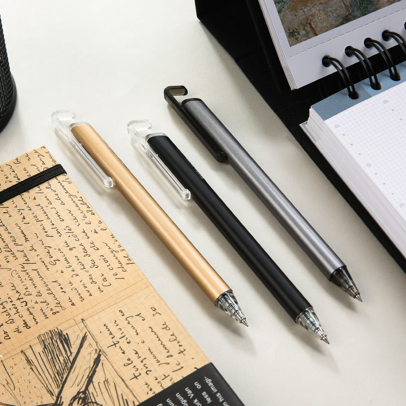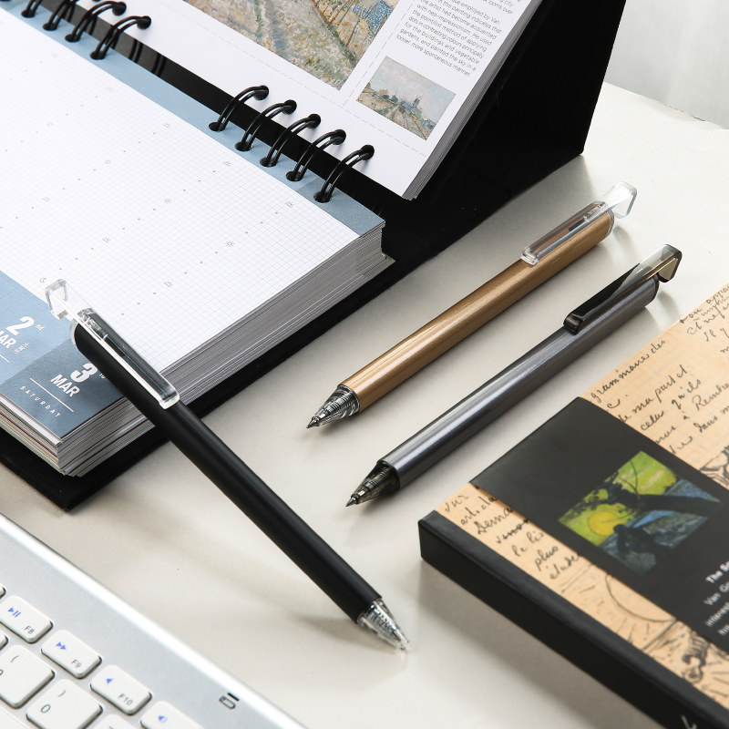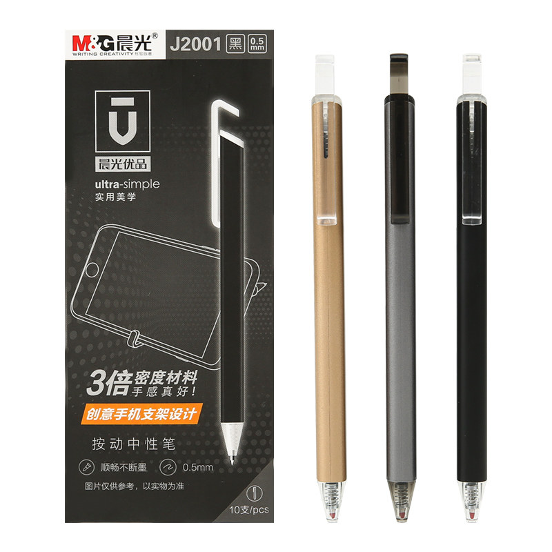 M&G Stationery Black Science and Technology Excellent Neuter Pen Students' Push Pen Creative Stand Design Black 5 10 Packs 0.50.7mm AGPJ2001