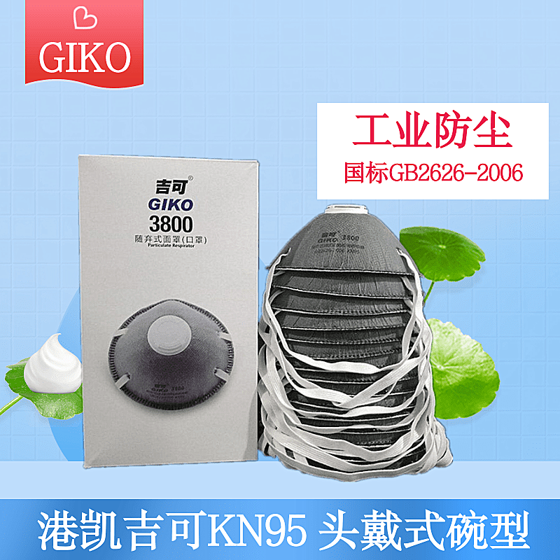 Gican 3800KN95 head-mounted dust mask with suction valve industrial powder breathable anti-droplets activated carbon cup type