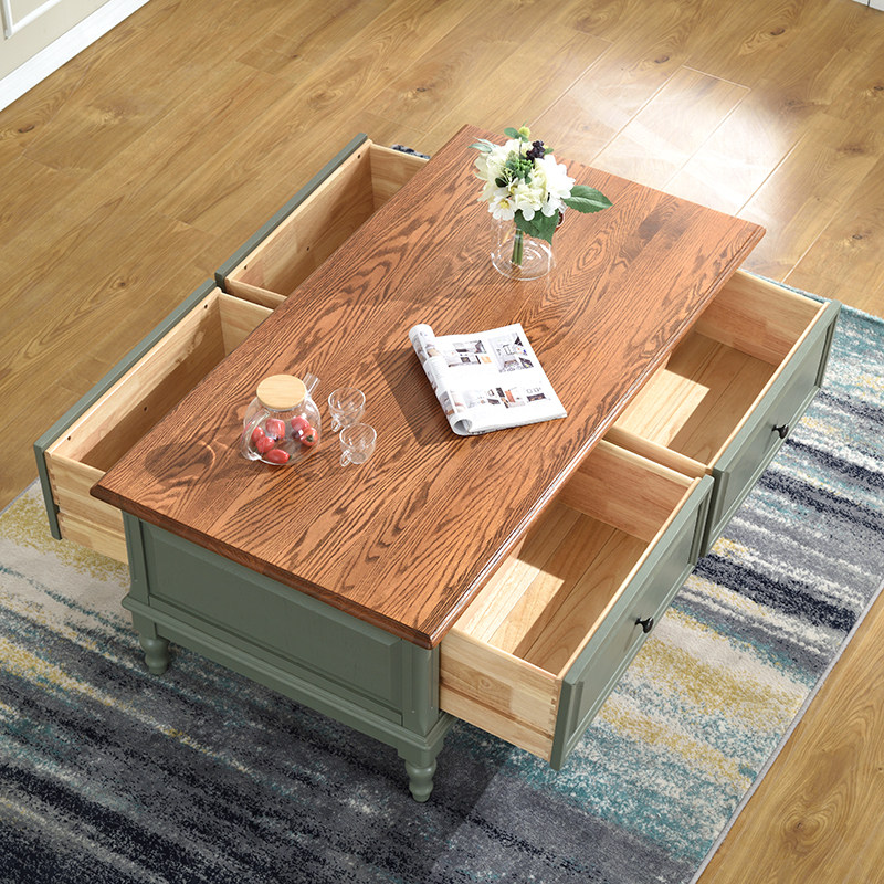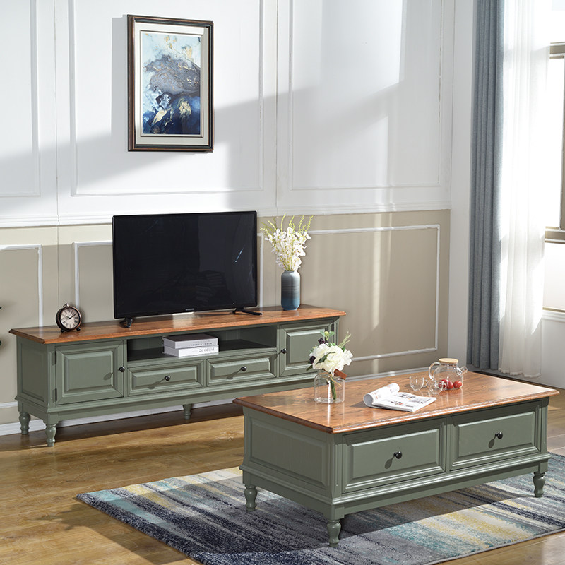 American light extravagant tea table small family type pure solid wood rectangular tea table minimalist living-room Mediterranean TV cabinet composition