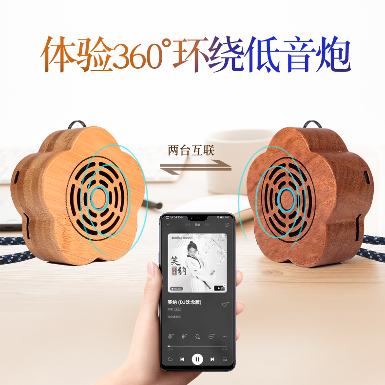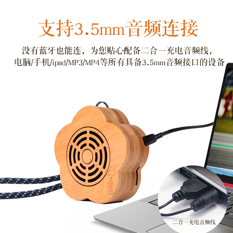 Solid Wood Plum Blossom Basket Tooth Interconnect Sound Stereo plug-in computer with portable wooden small speaker FM radio