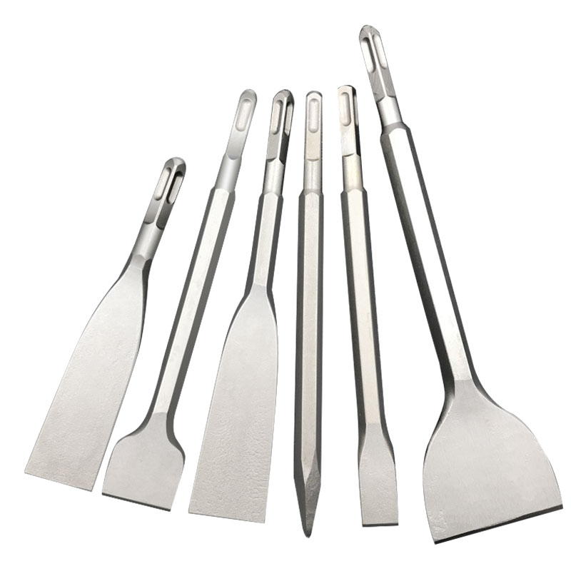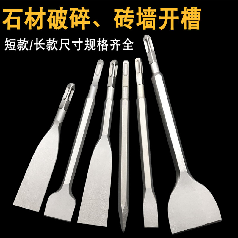Rotary hammer drill chisel Square handle four pit tip chisel widened flat chisel extended 1 meter concrete brick wall cutting impact drill