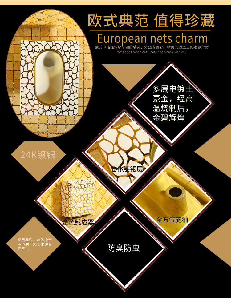 Gold squat toilet flush water tank set Ceramic color squat toilet stool device deodorant squat toilet set squat pit