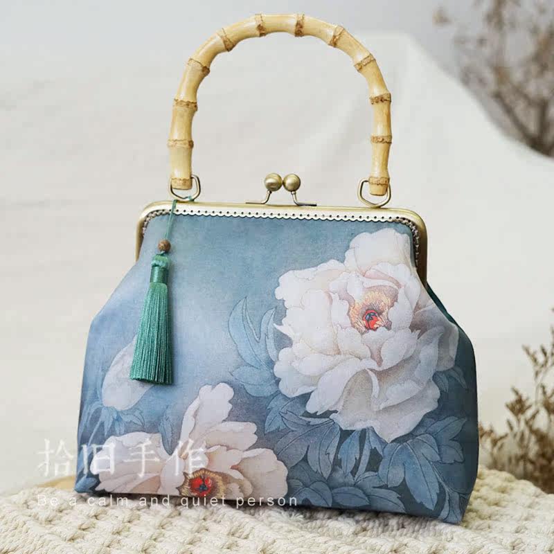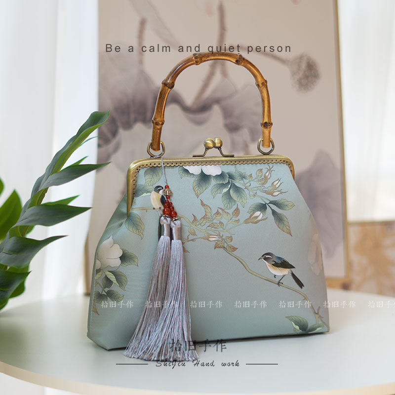 Hibiscus Flower Bamboo Festival Handbags Classical Chinese Wind Accessories Qipao 2022 New Women's Bags Mother Bag Mother's Festival Gifts