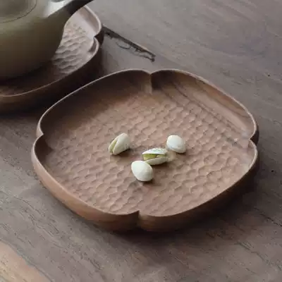 Shanshe's corner square plate handmade whole wooden household snacks small dish Japanese ins pot black walnut tea tray