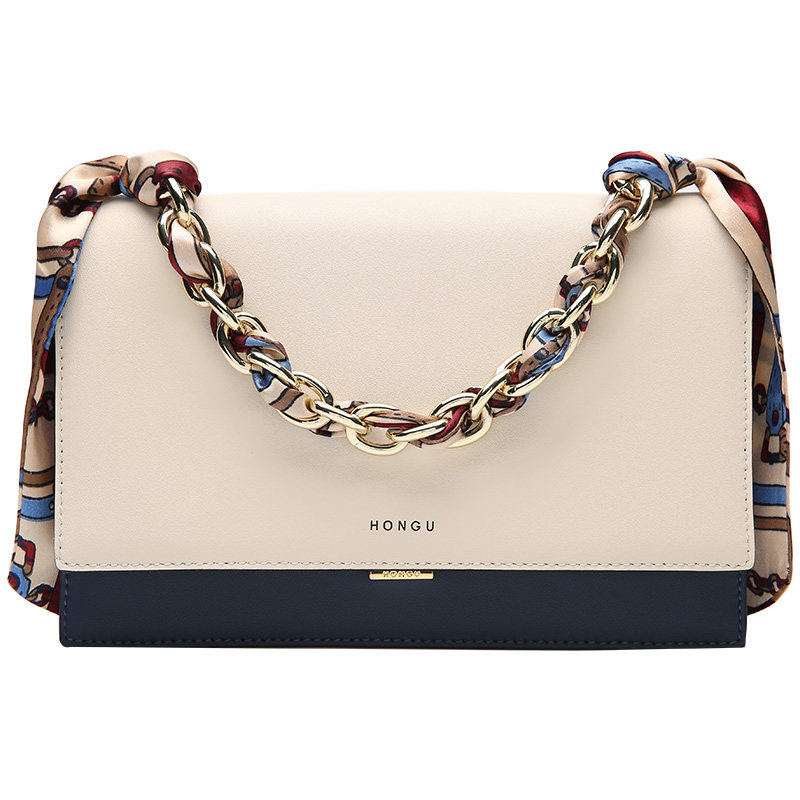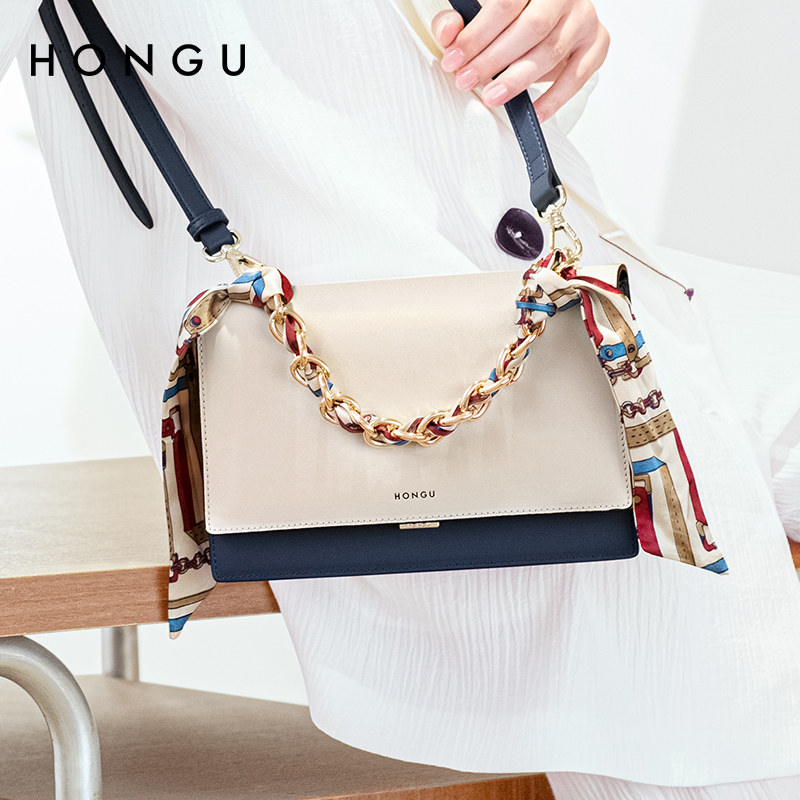 Red Valley 2022 new women's bag fashion silk scarf temperament leather shoulder bag messenger bag contrast color handbag 2039