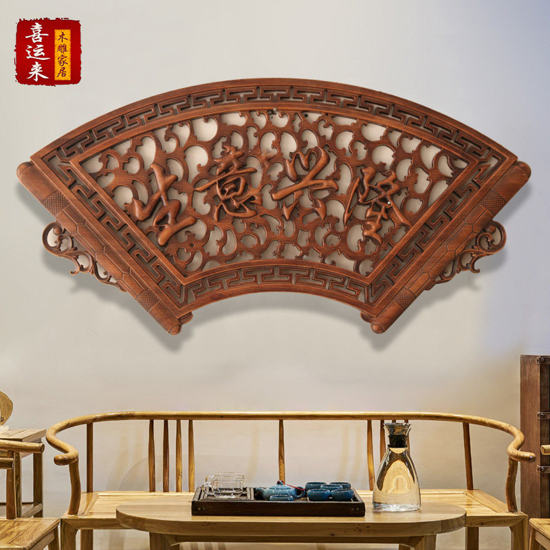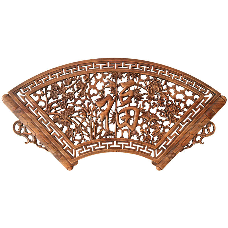East Yang Wood Carving Pendant Chinese Imitation Ancient Wall-mounted home Decorative Craft Gift Pendulum Decorated Zhangmu Xuanguan Fan-shaped Pendant
