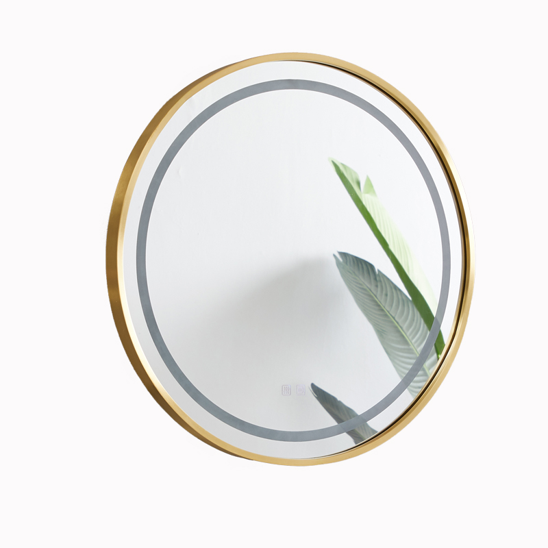 Nordic Brass Bathroom Mirror LED Intelligent Anti-Fog Wall-mounted Makeup room Makeup Mirror Son with lamp hanging wall style