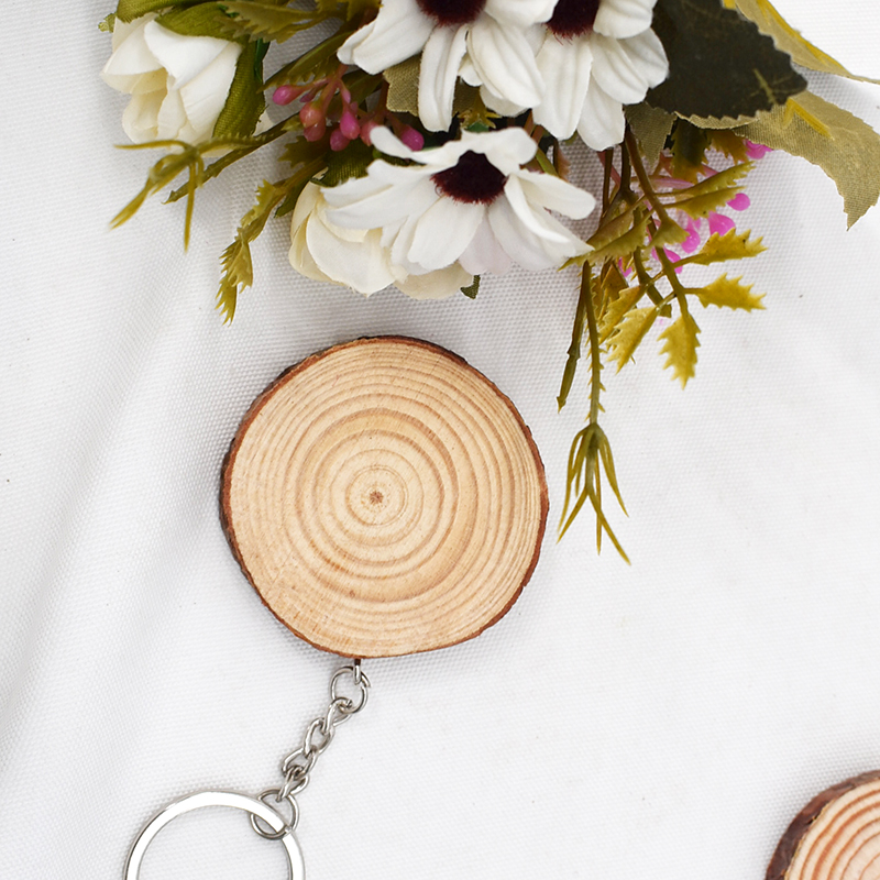 Hand-painted log piece Silver keychain diy handmade wood chip pendant pendant gift forest system